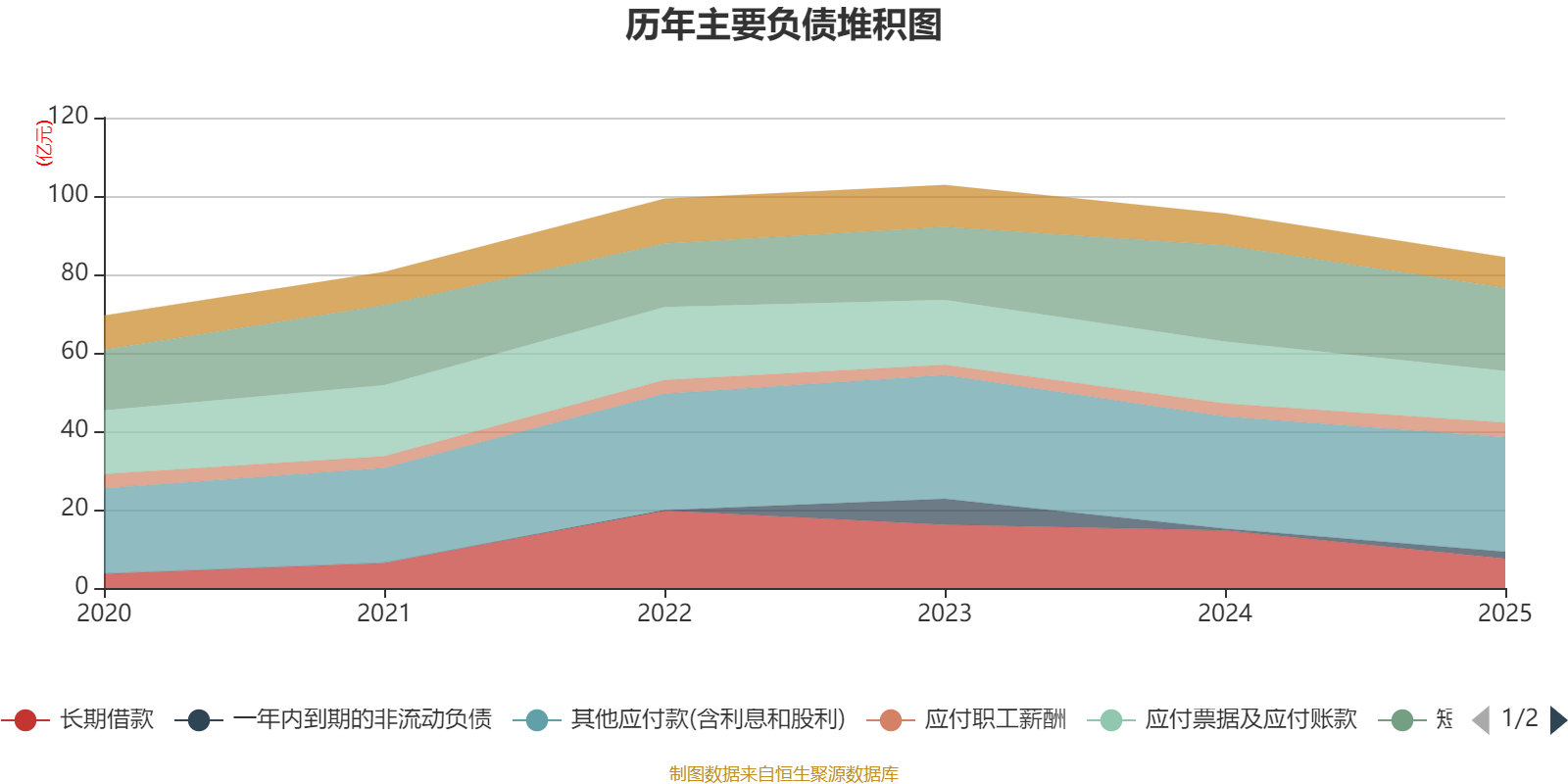 负债重大变化方面,截至2025年末,公司长期借款较上期末减少48.88%,占公司总资产比重下降2.87个百分点;短期借款较上期末减少13.65%,占公司总资产比重下降1.2个百分点;应付票据及应付账款较上期末减少16.77%,占公司总资产比重下降0.98个百分点;一年内到期的非流动负债较上期末增加255.38%,占公司总资产比重上升0.52个百分点。