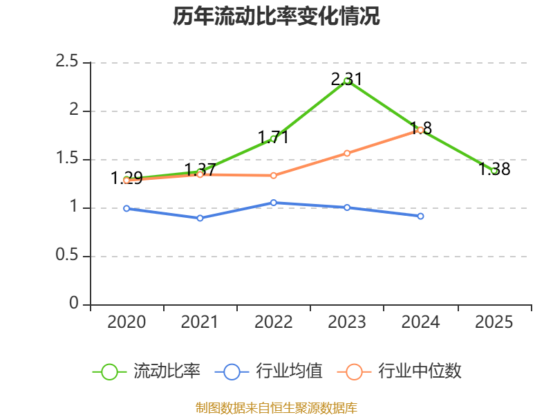 2025年,公司流动比率为1.38,速动比率为0.34。