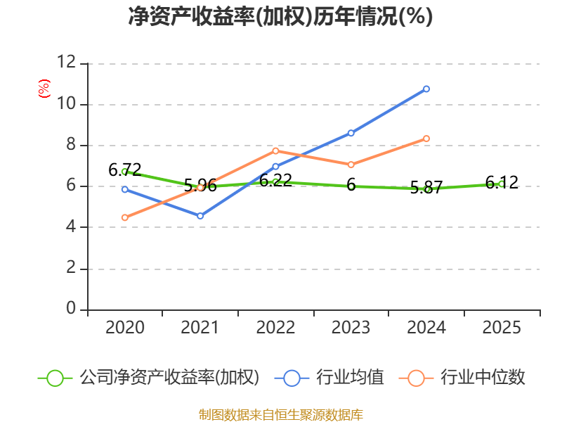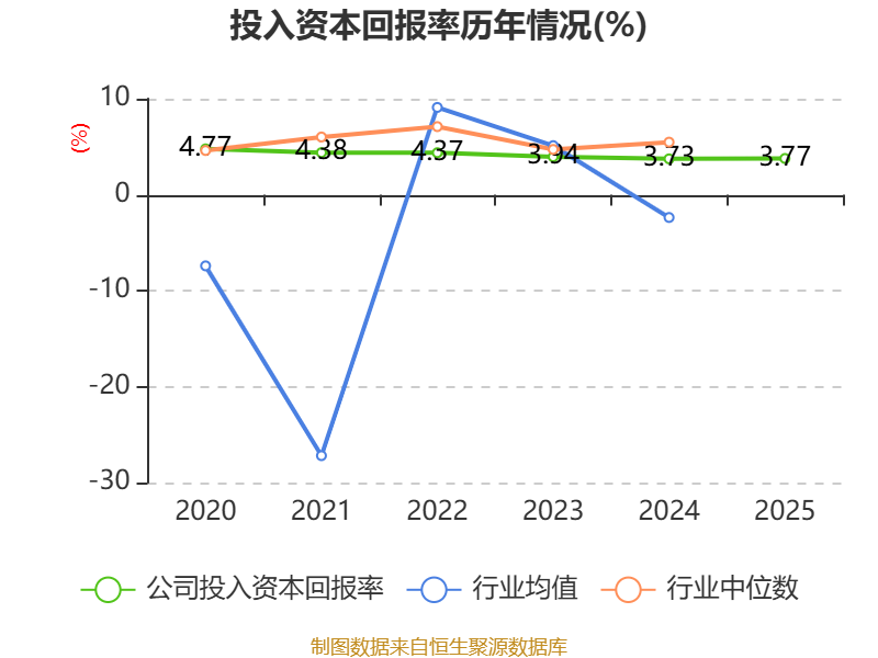 数据显示,2025年公司加权平均净资产收益率为6.12%,较上年同期上升0.25个百分点。公司2025年投入资本回报率为3.77%,较上年同期上升0.04个百分点。