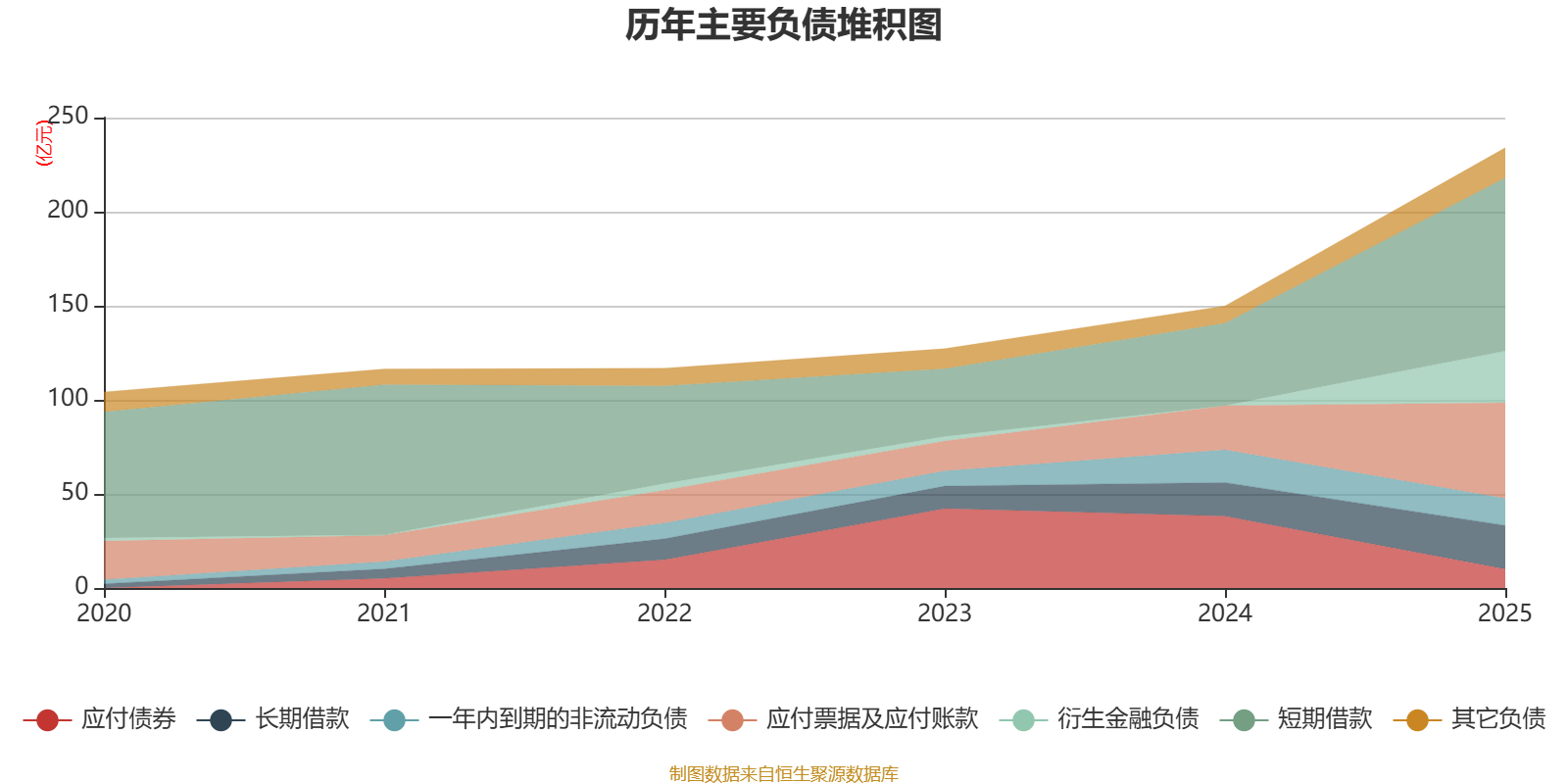 负债重大变化方面,截至2025年末,公司应付债券较上年末减少73.79%,占公司总资产比重下降12.73个百分点;衍生金融负债较上年末增加314275.42%,占公司总资产比重上升7.49个百分点;短期借款较上年末增加110.04%,占公司总资产比重上升7.42个百分点;应付票据及应付账款较上年末增加116.14%,占公司总资产比重上升4.37个百分点。
