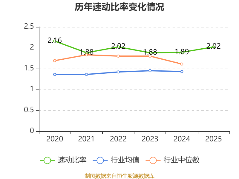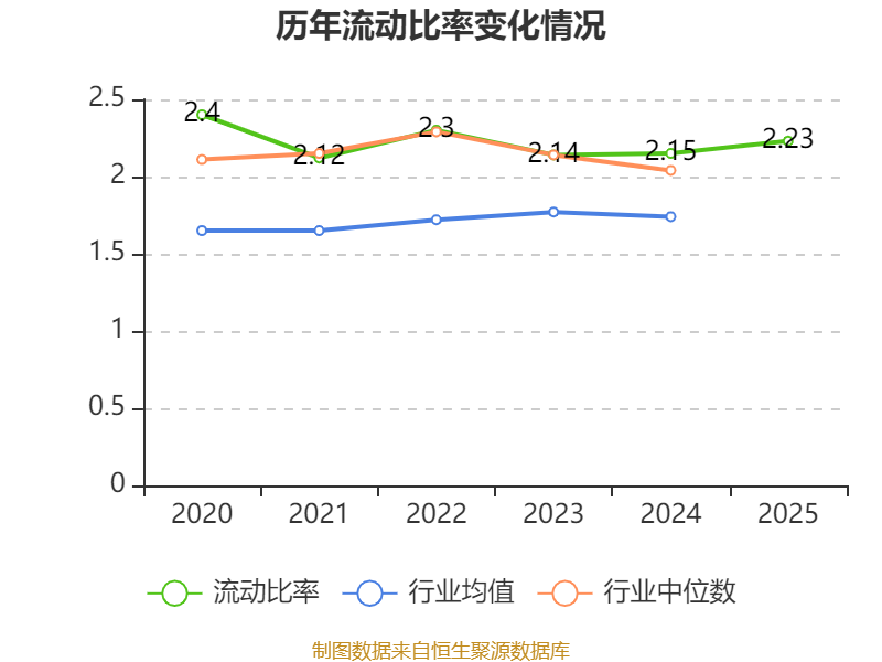2025年,公司流动比率为2.23,速动比率为2.02。