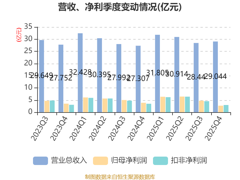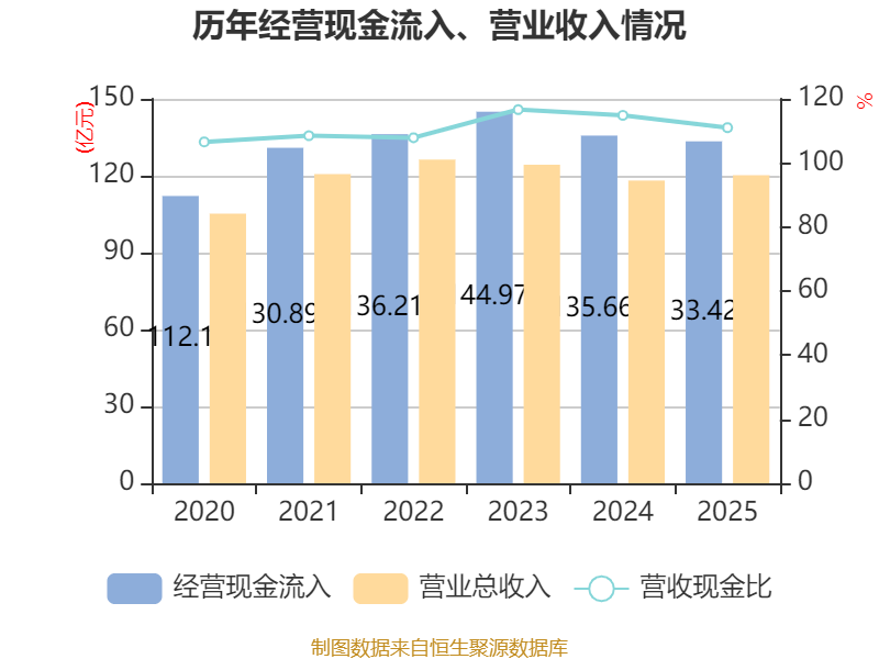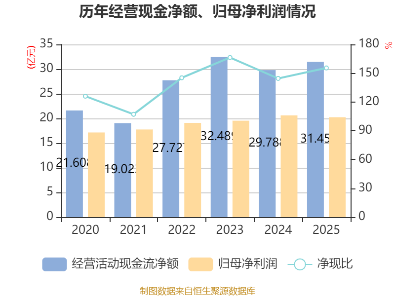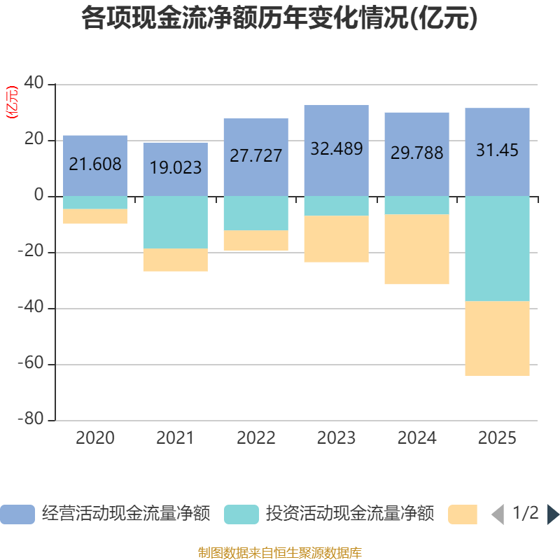 截至2025年,公司经营活动现金流净额为31.45亿元,同比增长5.58%;筹资活动现金流净额-26.63亿元,同比减少1.77亿元;投资活动现金流净额-37.61亿元,上年同期为-6.6亿元。