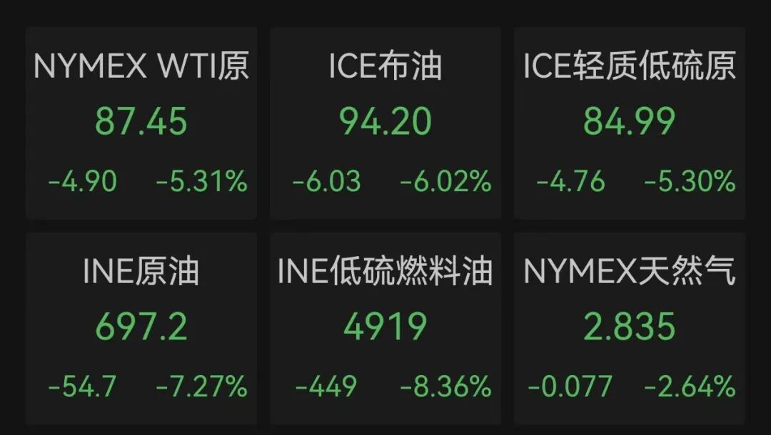 国际油价震荡调整。Wind数据显示,截至北京时间3月25日9:50,NYMEX WTI原油期货主力合约下跌5.31%,ICE布油期货主力合约下跌6.02%。