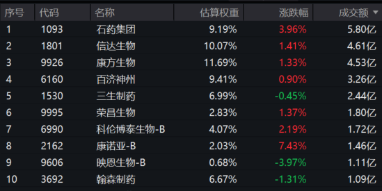 港股通创新药ETF(159570)标的指数热门股多数飘红:石药集团绩后涨近4%,科伦博泰生物-B涨超2%,信达生物、康方生物、荣昌生物涨超1%。