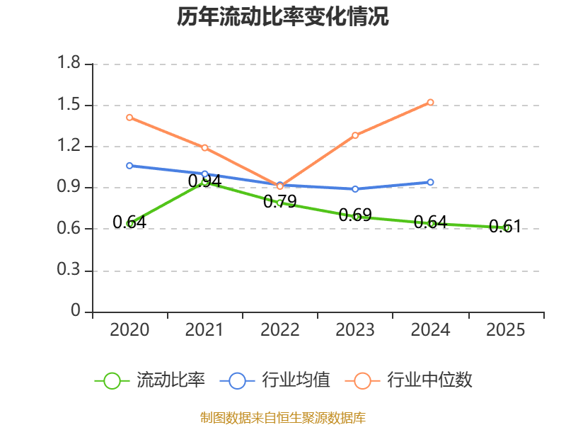 2025年,公司流动比率为0.61,速动比率为0.53。
