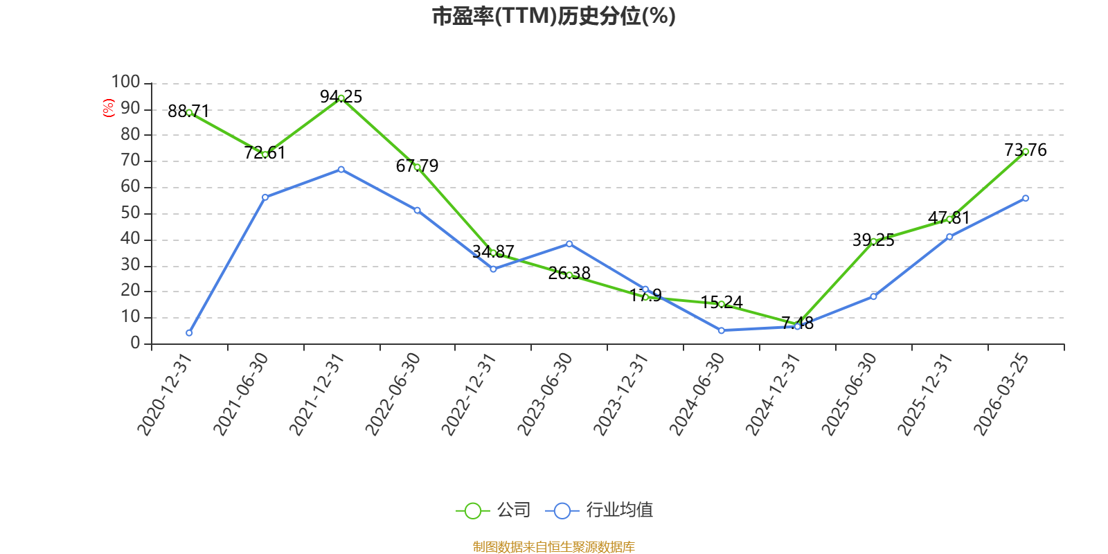 市盈率、市净率为负时,不显示当期分位数,会导致折线图中断。