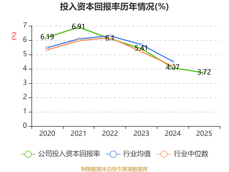 数据显示,2025年公司加权平均净资产收益率为8.12%,较上年同期上升0.3个百分点。公司2025年投入资本回报率为3.72%,较上年同期下降0.35个百分点。