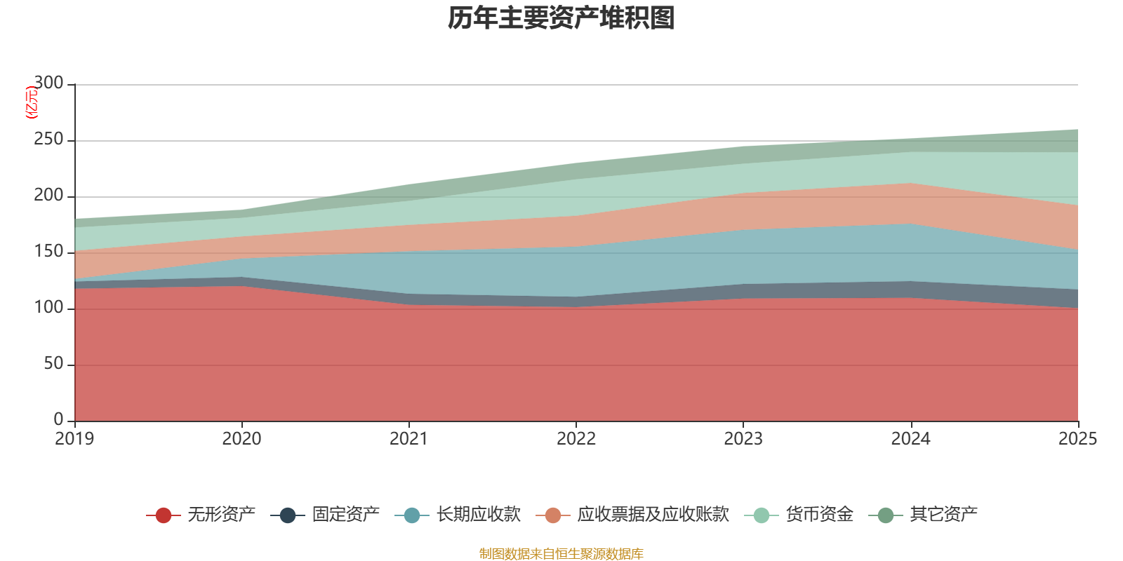 资产重大变化方面,截至2025年末,公司货币资金较上年末增加71.12%,占公司总资产比重上升7.21个百分点;长期应收款较上年末减少30.73%,占公司总资产比重下降6.71个百分点;无形资产较上年末减少8.31%,占公司总资产比重下降4.86个百分点;其他应收款(含利息和股利)较上年末增加650.73%,占公司总资产比重上升2.43个百分点。