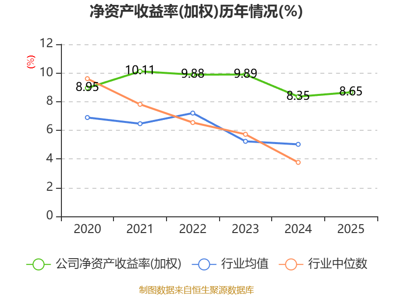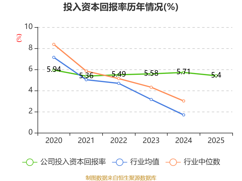 数据显示,2025年公司加权平均净资产收益率为8.65%,较上年同期上升0.3个百分点。公司2025年投入资本回报率为5.4%,较上年同期下降0.31个百分点。