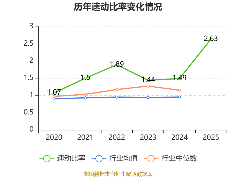 2025年,公司流动比率为2.64,速动比率为2.63。