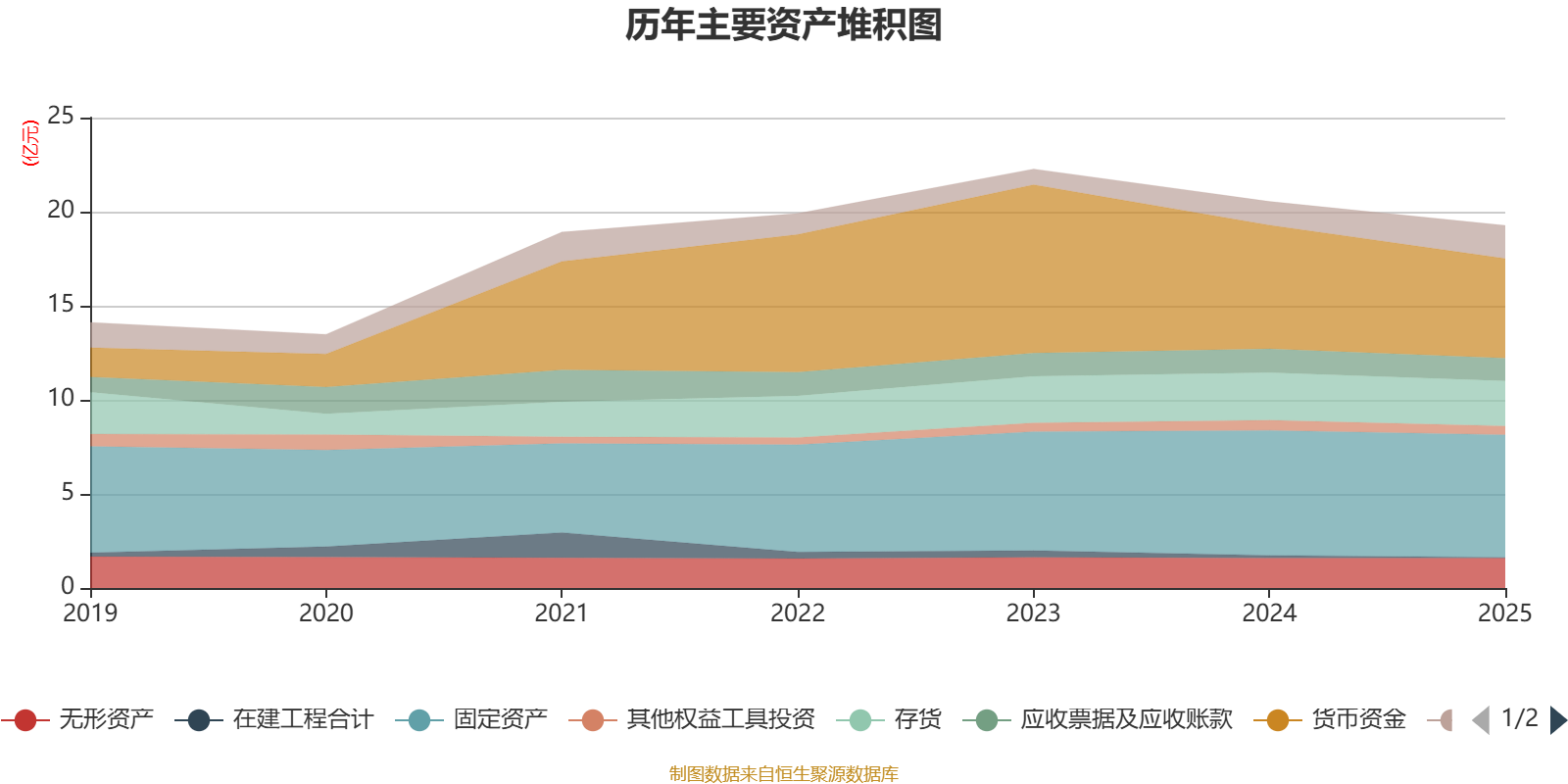 资产重大变化方面,截至2025年末,公司货币资金较上年末减少19.46%,占公司总资产比重下降4.51个百分点;交易性金融资产合计占公司总资产的2.08%,上年末为0;固定资产较上年末减少1.86%,占公司总资产比重上升1.51个百分点;预付款项较上年末增加32.45%,占公司总资产比重上升0.85个百分点。