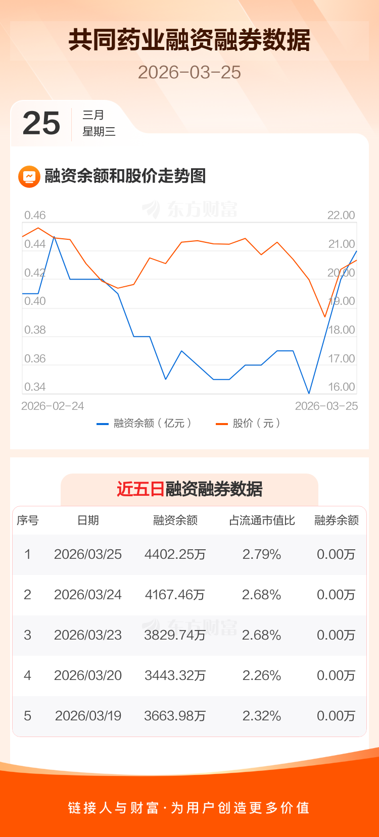 交易所最新数据显示,共同药业于2026年3月25日获融资买入580.79万元,融资偿还346.00万元,当日融资净买入234.79万元。目前,该股融资余额4402.25万,占流通市值比例为2.79%。
