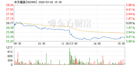 中天精装3月26日盘中跌幅达5%