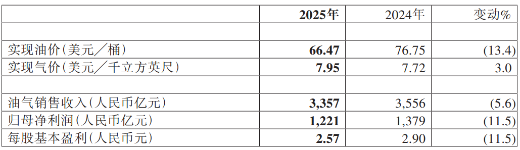 不过,2025年,国际油价呈震荡下行态势。公司年报显示,2025年,公司实现石油液体销售量为589.2百万桶,同比上涨4.7% ,平均实现油价为66.47美元/桶,同比下降约13.4% ,与国际油价走势基本一致。油价下行成为营收和利润下滑的主要原因。