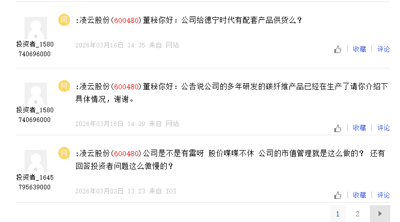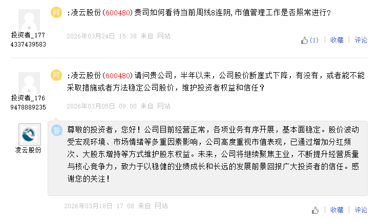 值得注意的是,公司在投资者互动平台的互动频率较低,近期12条提问仅回复3条,回复率仅为25%。例如,关于“如何看待周线8连阴,市值管理工作是否照常进行”的疑问,目前尚未获得回应。更早前,3月3日有投资者曾质问“公司是不是有雷呀?股价跌跌不休,公司的市值管理就是这么做的?还有回答投资者问题这么傲慢的?”,至今亦无答复。