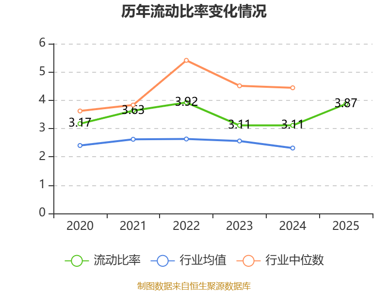 2025年,公司流动比率为3.87,速动比率为3.52。
