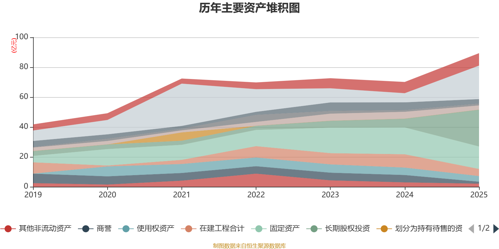 资产重大变化方面,截至2025年末,公司长期股权投资较上年末增加323.97%,占公司总资产比重上升19.26个百分点;货币资金较上年末增加264.21%,占公司总资产比重上升16.32个百分点;固定资产较上年末减少16.54%,占公司总资产比重下降8.87个百分点;在建工程合计较上年末减少46.49%,占公司总资产比重下降7.38个百分点。