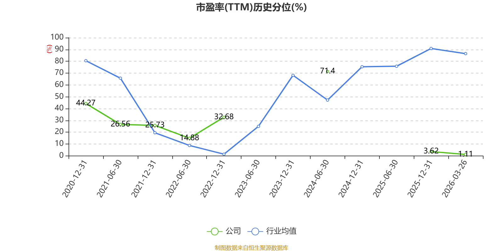 市盈率、市净率为负时,不显示当期分位数,会导致折线图中断。