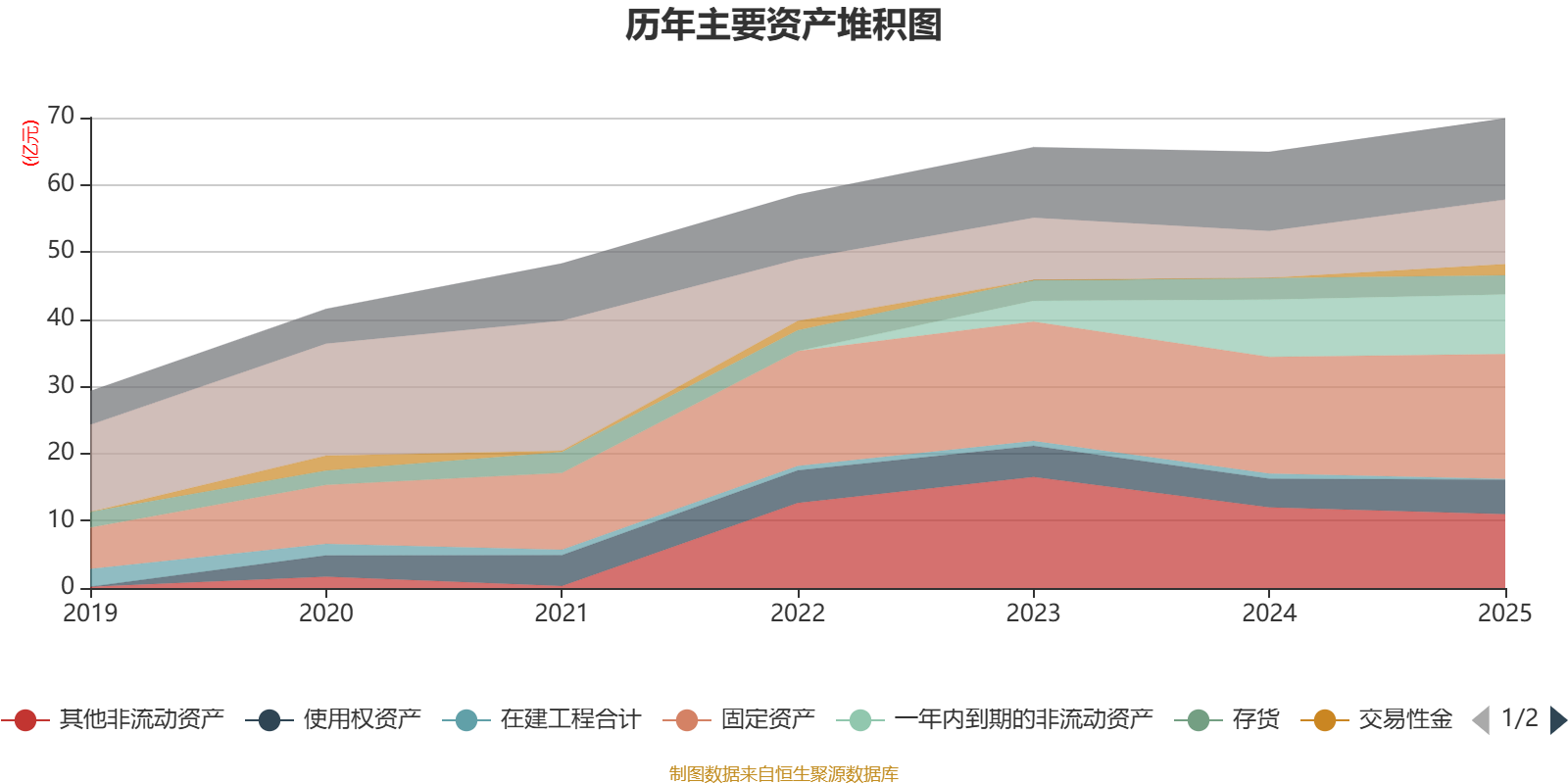 资产重大变化方面,截至2025年末,公司货币资金较上年末增加37.53%,占公司总资产比重上升2.99个百分点;其他非流动资产较上年末减少8.26%,占公司总资产比重下降2.73个百分点;交易性金融资产合计较上年末增加10598.9%,占公司总资产比重上升2.35个百分点;在建工程合计较上年末减少84.75%,占公司总资产比重下降0.99个百分点。