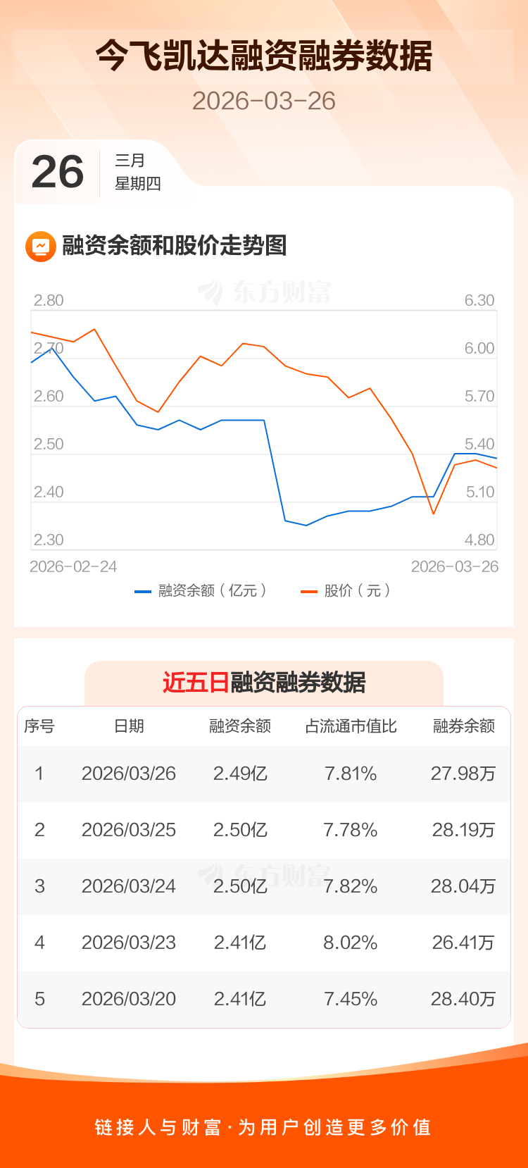 交易所最新数据显示,今飞凯达于2026年3月26日获融资买入780.22万元,融资偿还912.67万元,当日融资净偿还132.45万元。目前,该股融资余额2.49亿,占流通市值比例为7.81%。
