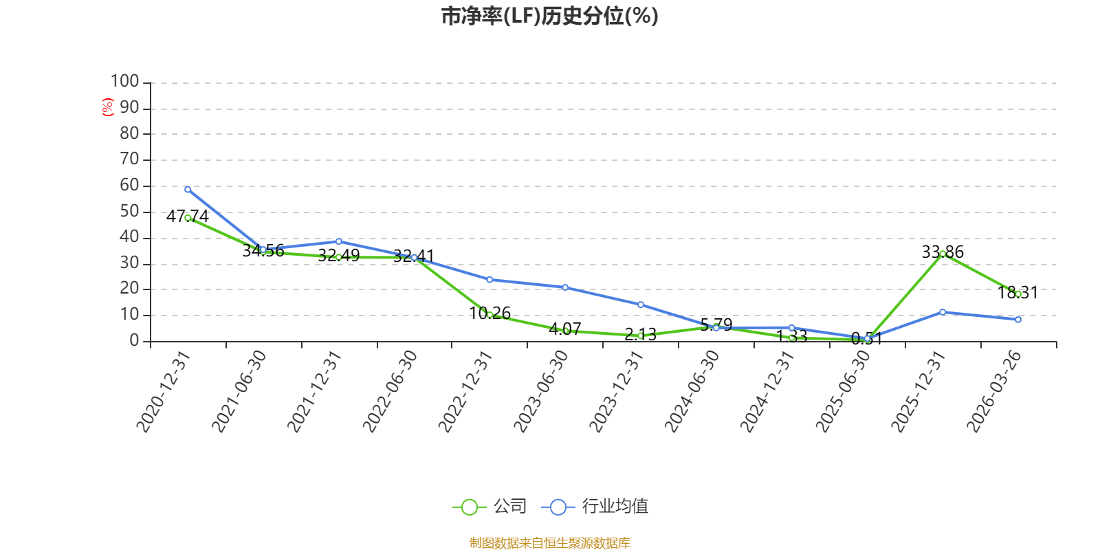 市盈率、市净率为负时,不显示当期分位数,会导致折线图中断。
