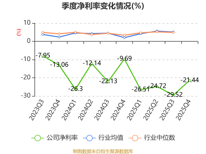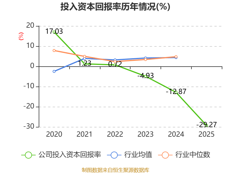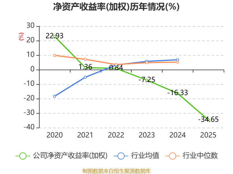 数据显示,2025年公司加权平均净资产收益率为-34.65%,较上年同期下降18.32个百分点。公司2025年投入资本回报率为-29.27%,较上年同期下降16.4个百分点。