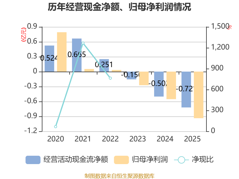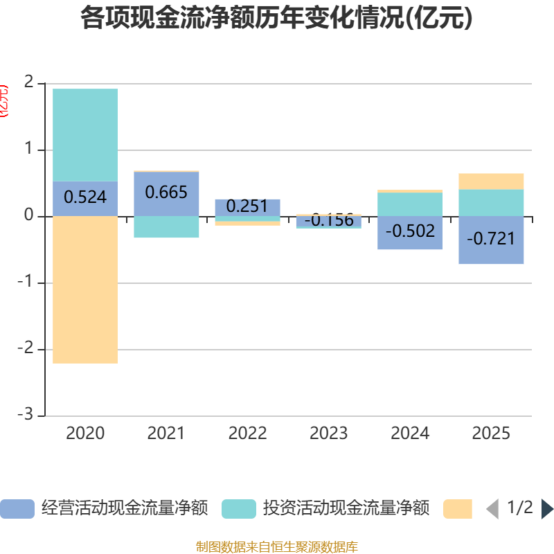 截至2025年,公司经营活动现金流净额为-7206.15万元,同比减少2187.75万元;筹资活动现金流净额2379.39万元,同比增加1956.83万元;投资活动现金流净额4032.03万元,上年同期为3534.57万元。