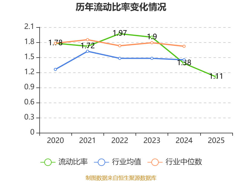 2025年,公司流动比率为1.11,速动比率为0.68。