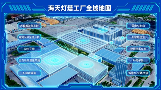 从原料筛选到生产发酵,再到品控检测,AI与大数据被海天味业应用于研、产、供、销各环节。智能选豆系统全年检测约2.5万亿颗黄豆,其大数据模型能实时感知天气、原料与设备状态,自动计算调控方案,提升黄豆蛋白利用率。与此同时,在线光谱24小时监测酱油的技术,更是将传统嗅觉经验转化为可量化数据模型,确保每批酱油质量、风味的稳定。