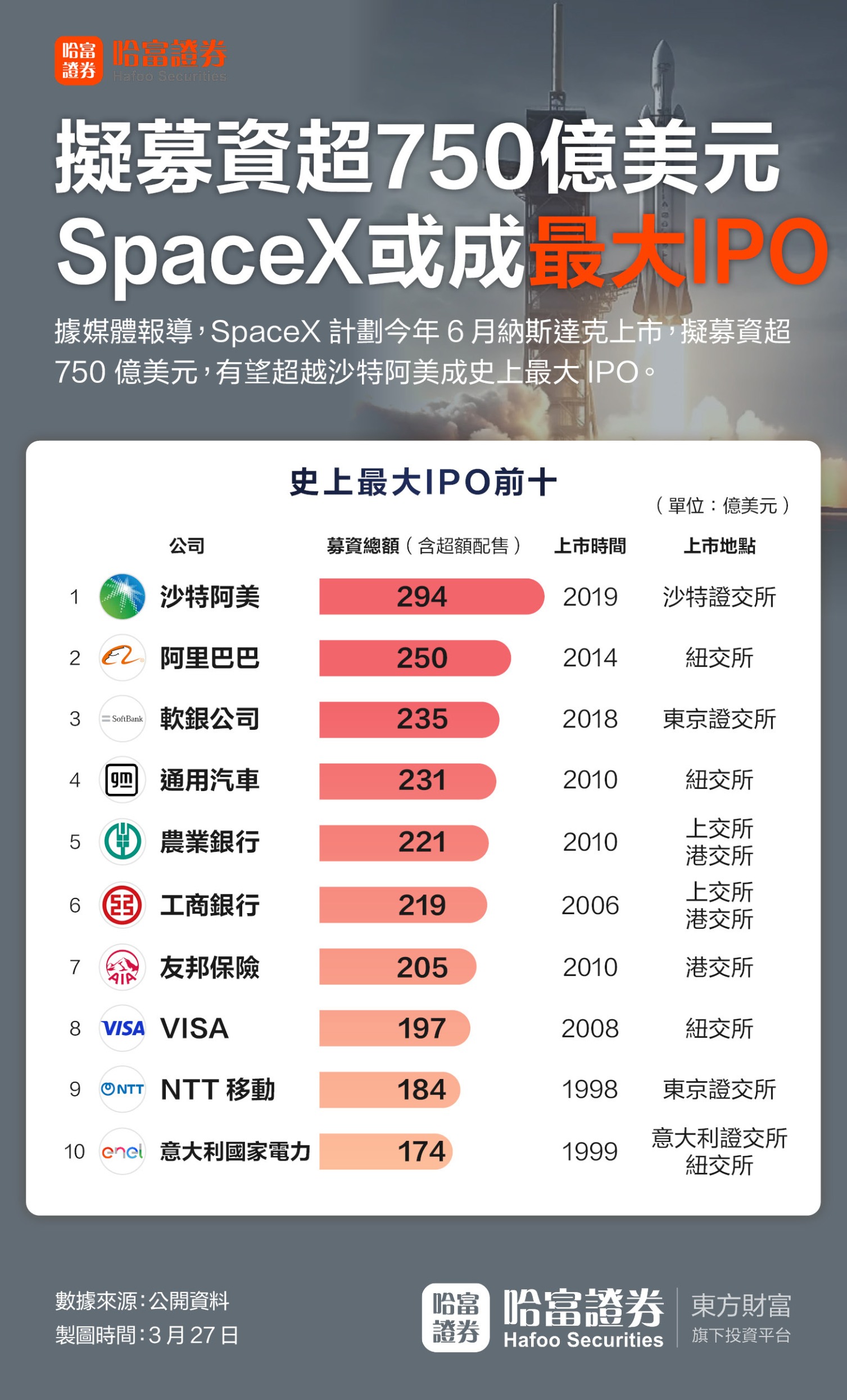 此次IPO将有望成为历史上规模最大IPO,其体量将远超以往——参与筹备工作的顾问预计,公司在IPO中或拟募资超750亿美元,高于此前预估的500亿美元,大幅刷新IPO募资纪录。