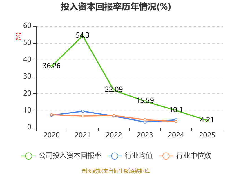 数据显示,2025年公司加权平均净资产收益率为4.66%,较上年同期下降7.02个百分点。公司2025年投入资本回报率为4.21%,较上年同期下降5.89个百分点。