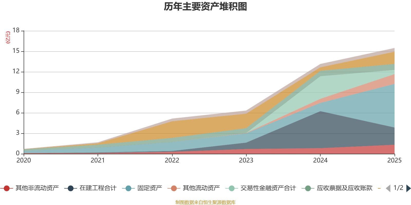 资产重大变化方面,截至2025年末,公司固定资产较上年末增加426.06%,占公司总资产比重上升32.02个百分点;在建工程合计较上年末减少53.38%,占公司总资产比重下降24.9个百分点;交易性金融资产合计较上年末减少81.79%,占公司总资产比重下降21.27个百分点;货币资金较上年末增加245.1%,占公司总资产比重上升7.58个百分点。