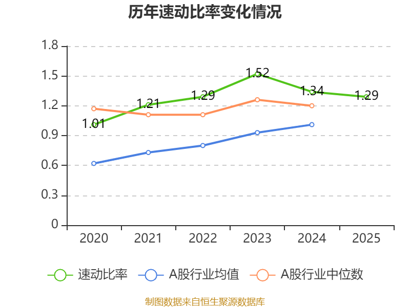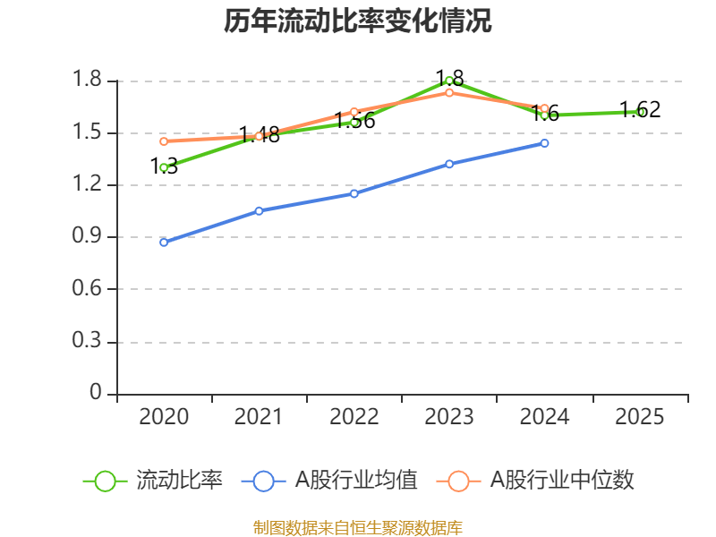 2025年,公司流动比率为1.62,速动比率为1.29。