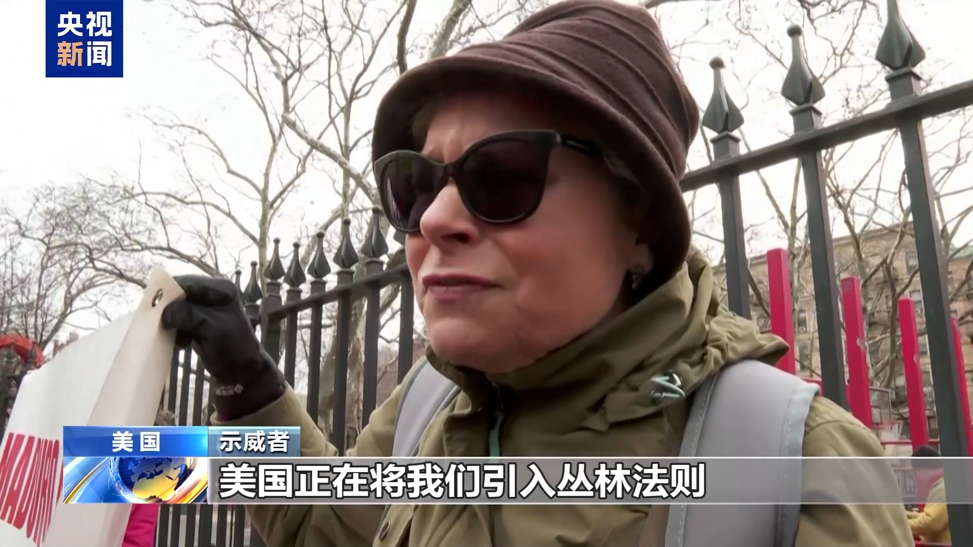 示威者:美国正在将我们引入丛林法则,还正在对伊朗发动战争,谁知道他们什么时候才会停下来。