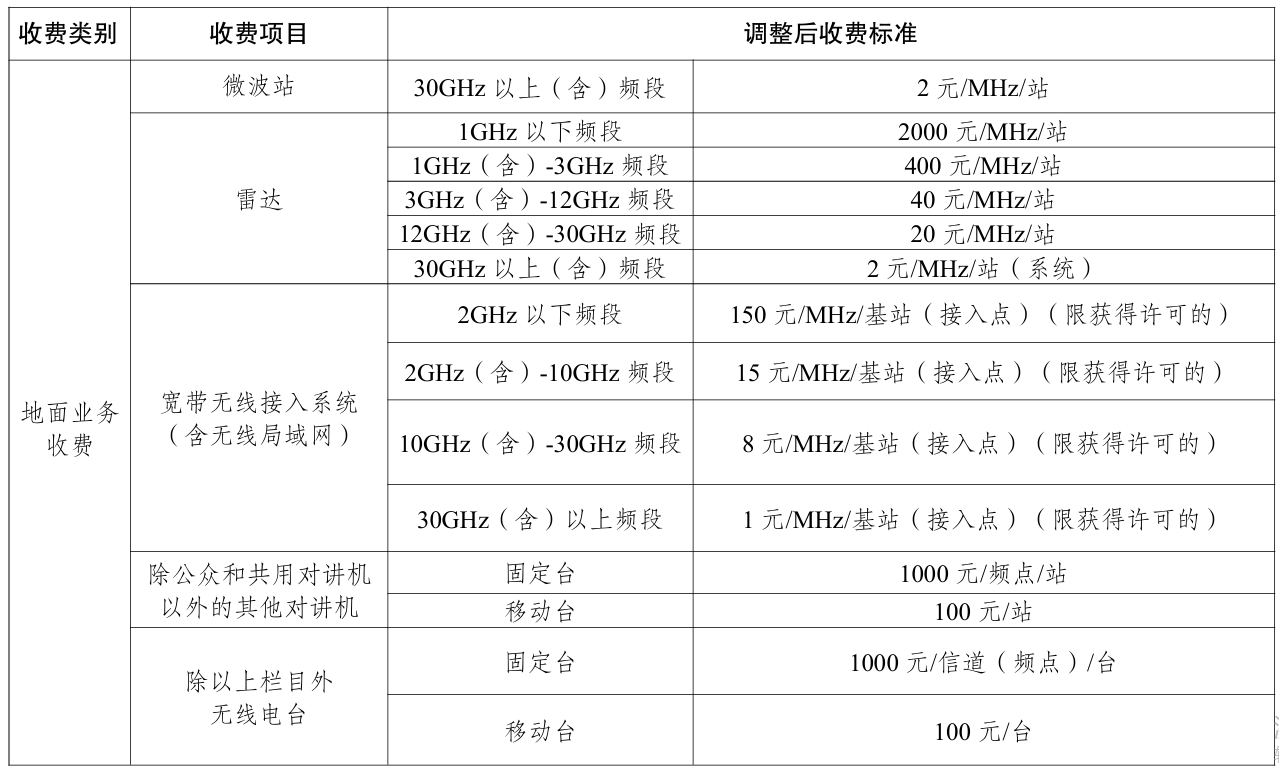 11. 雷达带宽小于1MHz的按照1MHz计算应收取的频率占用费;