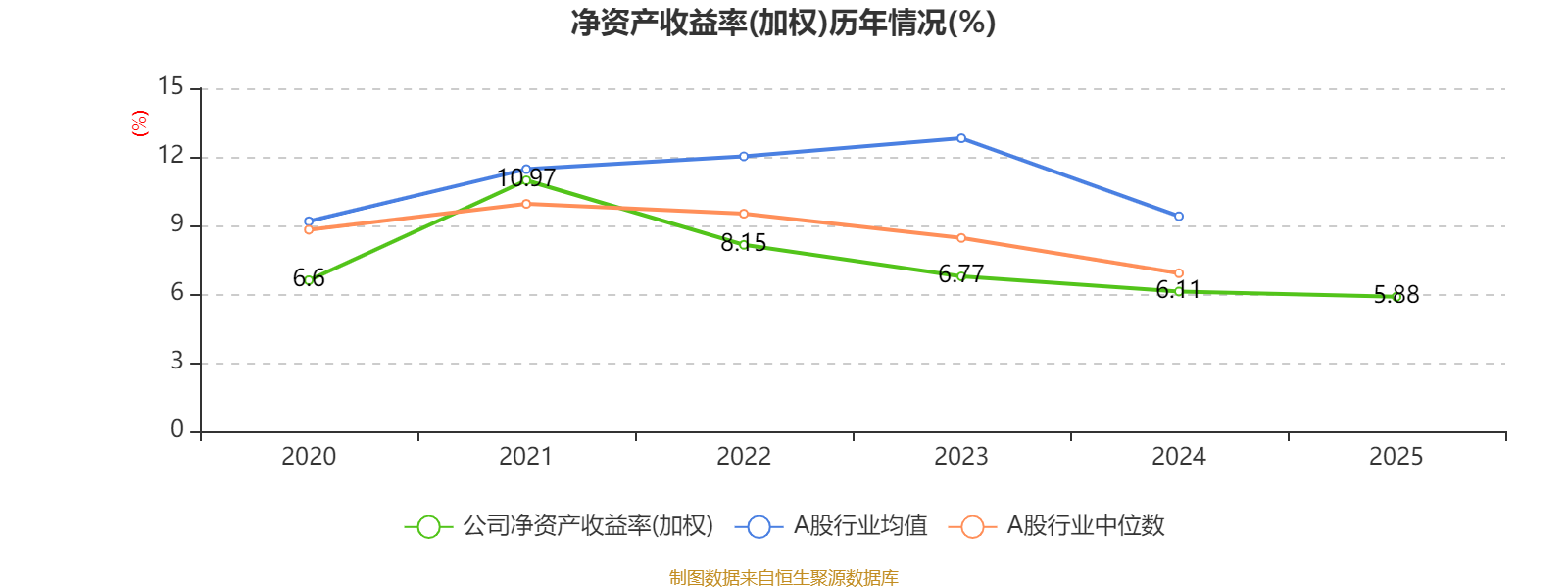 数据显示,2025年公司平均净资产收益率为5.88%,较上年同期下降0.23个百分点。
