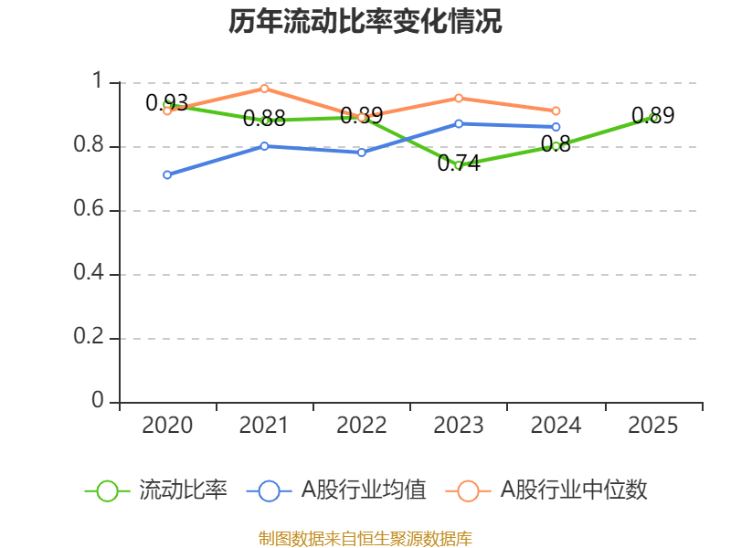 2025年,公司流动比率为0.89,速动比率为0.76。