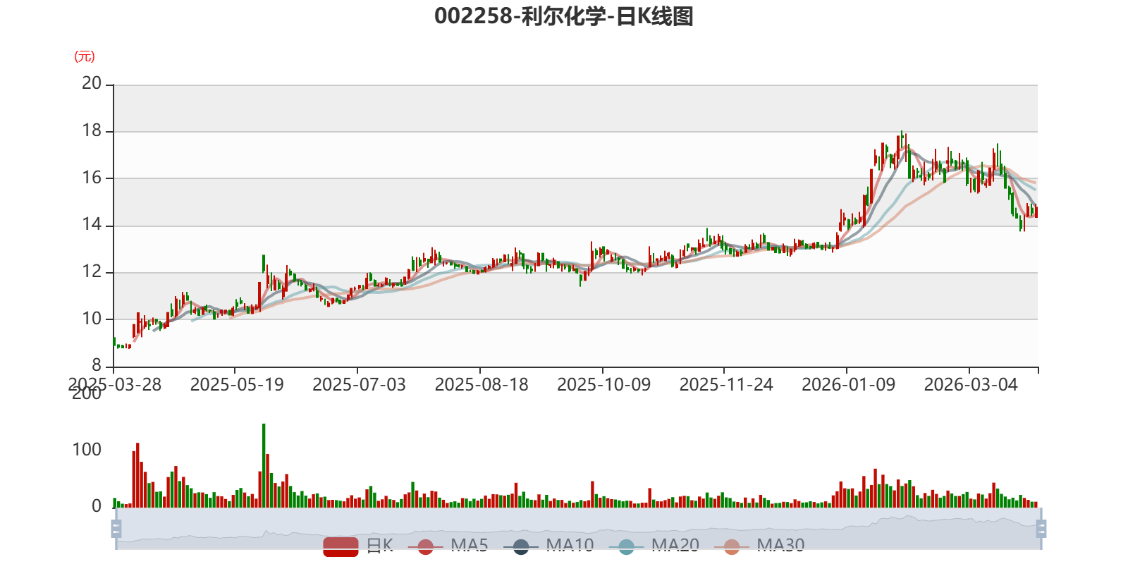 以3月27日收盘价计算,利尔化学目前市盈率(TTM)约为24.69倍,市净率(LF)约1.5倍,市销率(TTM)约1.31倍。