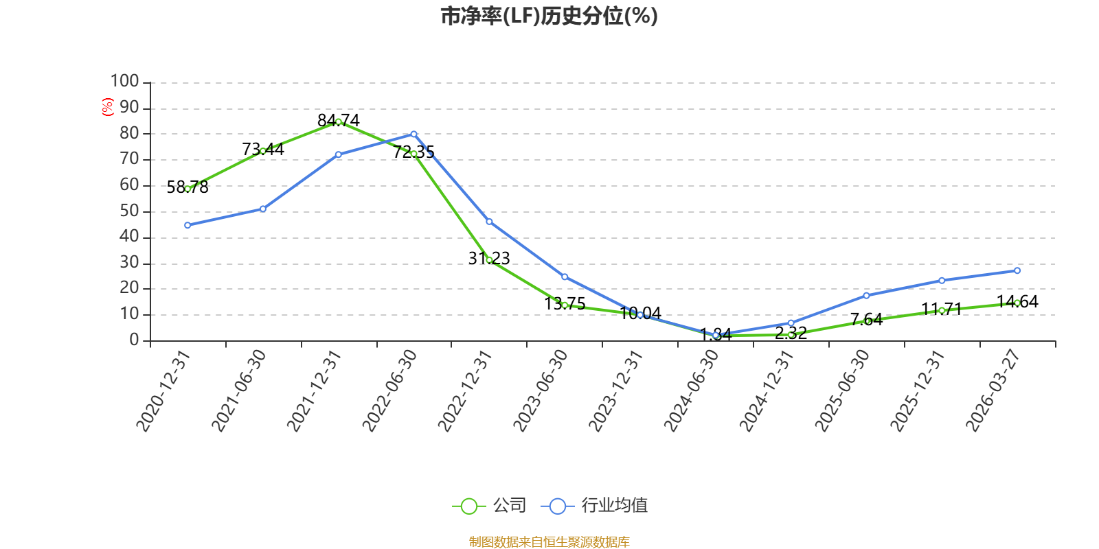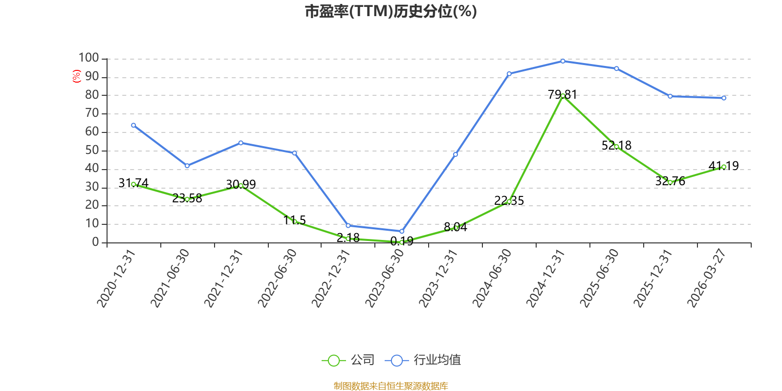 市盈率、市净率为负时,不显示当期分位数,会导致折线图中断。