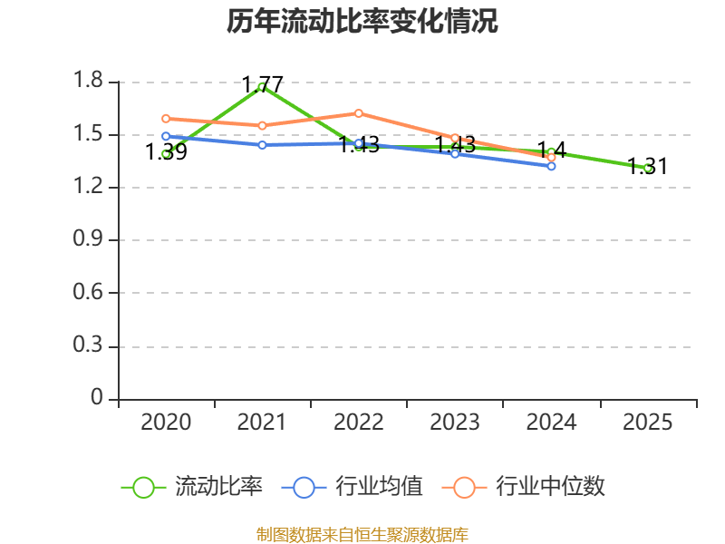 2025年,公司流动比率为1.31,速动比率为0.94。