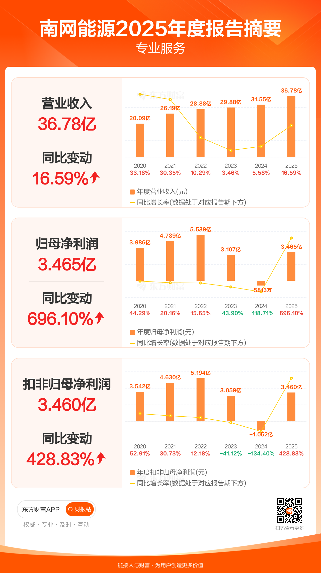 南网能源3月28日发布2025年年报显示,公司全年实现营业收入36.78亿元,同比增长16.59%;归母净利润3.46亿元,同比增长696.10%;扣非归母净利润3.46亿元,同比增长428.83%。