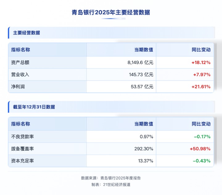 3月27日晚间,青岛银行披露了2025年年度报告。