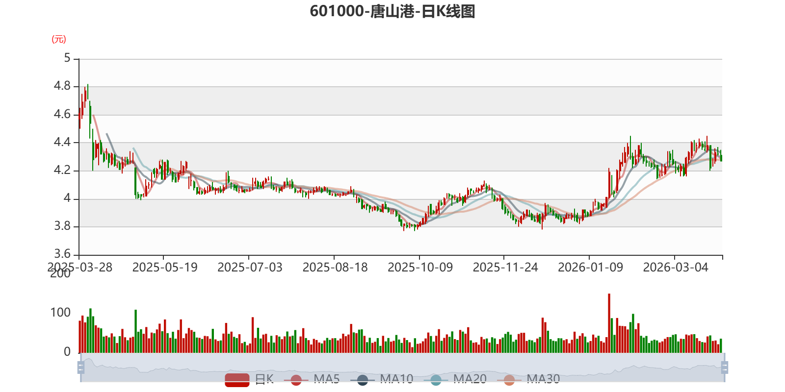以3月27日收盘价计算,唐山港目前市盈率(TTM)约为12.66倍,市净率(LF)约1.18倍,市销率(TTM)约4.45倍。