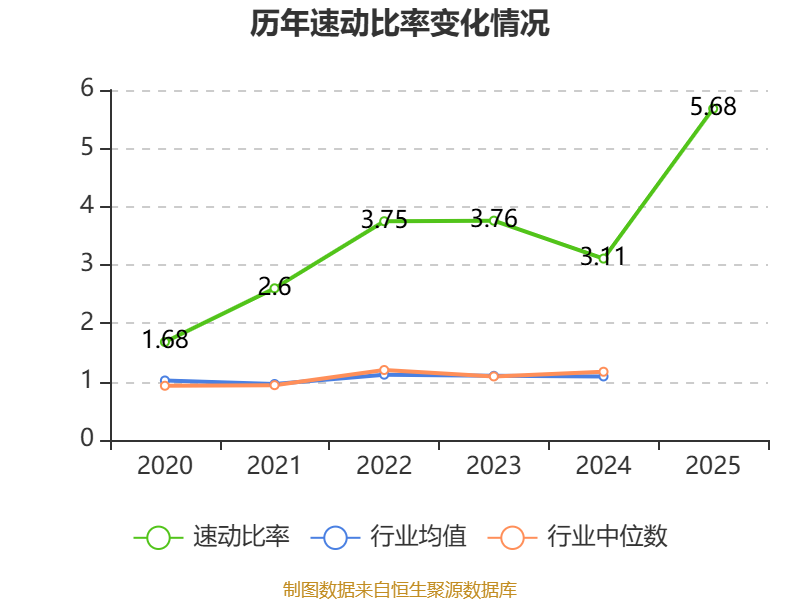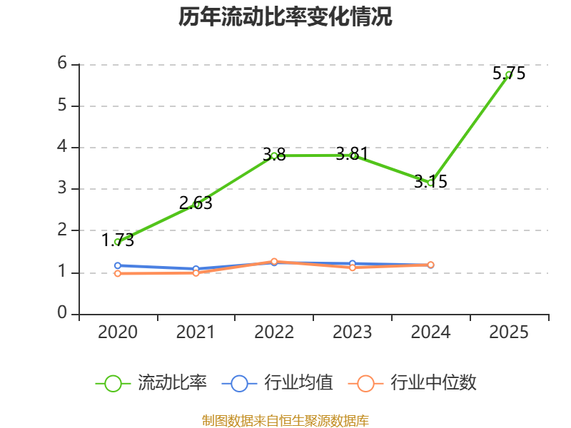 2025年,公司流动比率为5.75,速动比率为5.68。