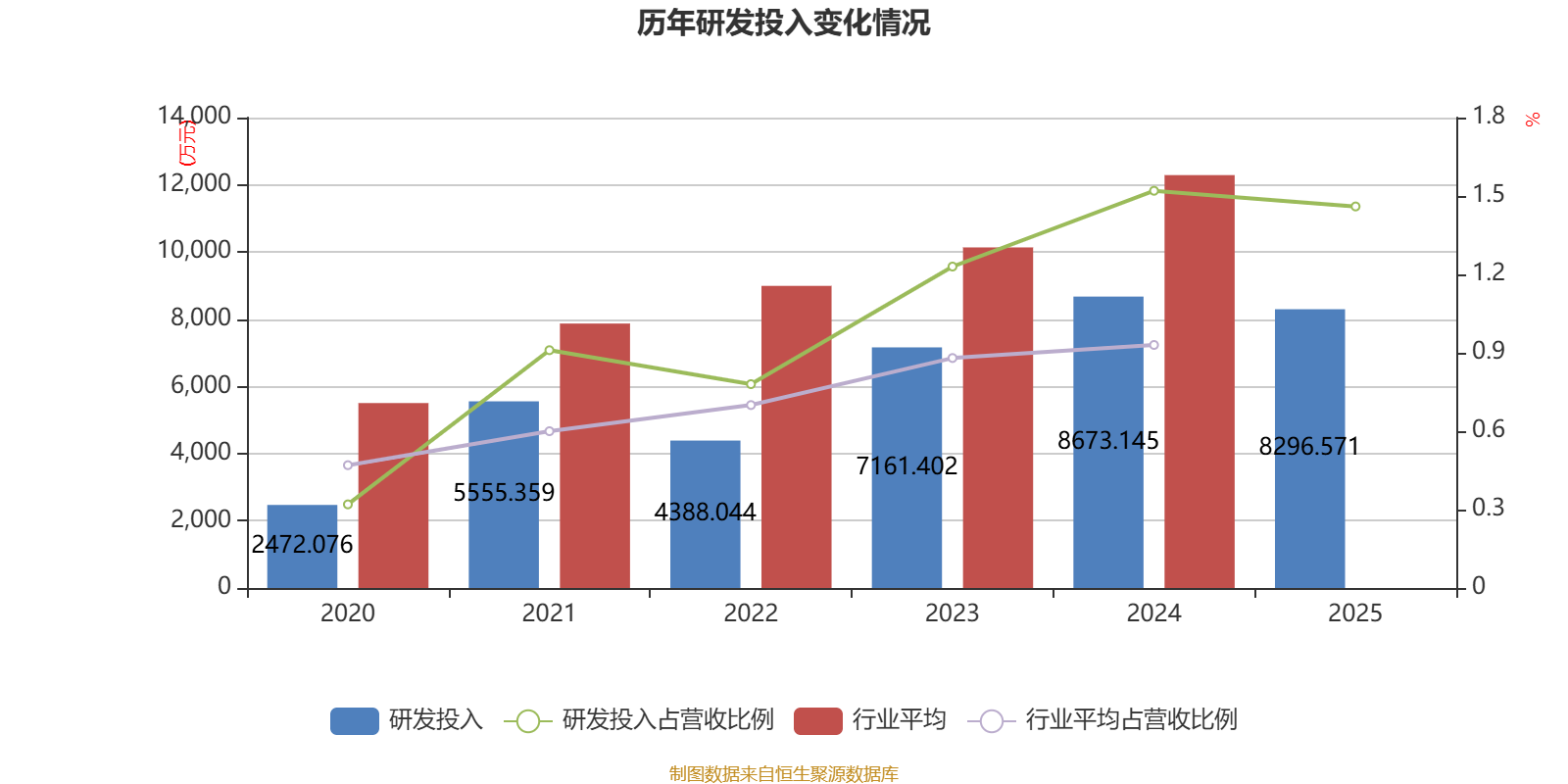 2025年全年,公司研发投入金额为8296.57万元,同比下降4.34%;研发投入占营业收入比例为1.46%,相比上年同期下降0.06个百分点。此外,公司全年研发投入资本化率为4.92%。