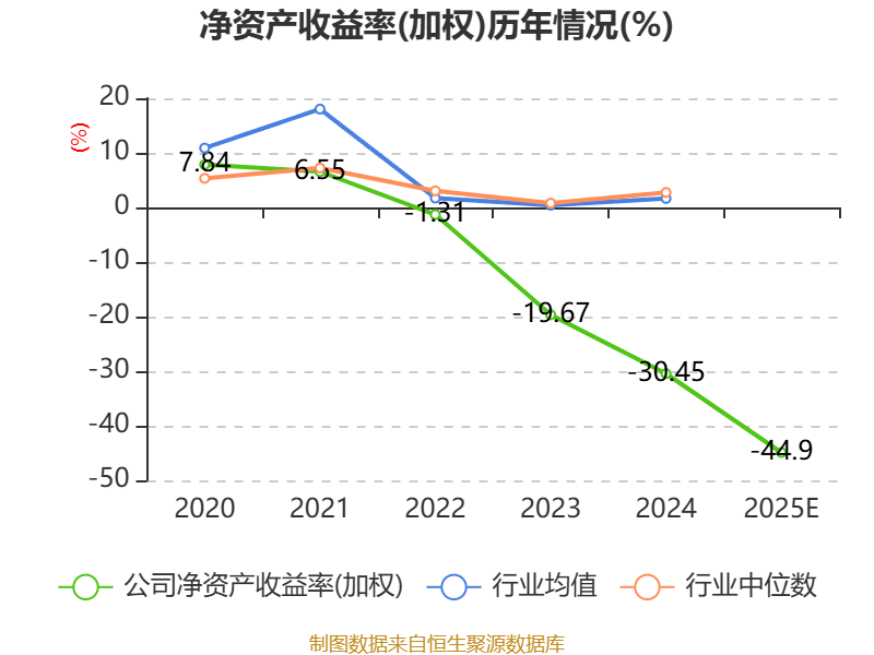 数据显示,2025年公司加权平均净资产收益率为-44.9%,较上年同期下降14.45个百分点。