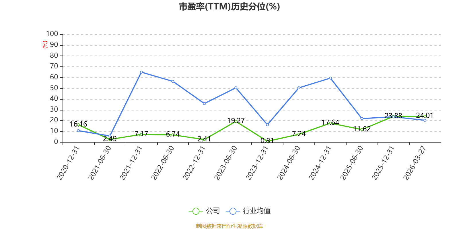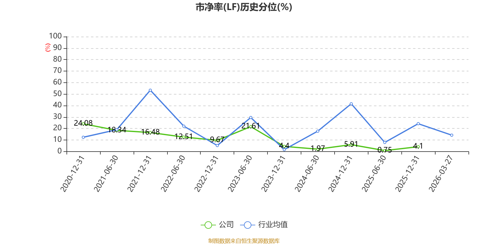 市盈率、市净率为负时,不显示当期分位数,会导致折线图中断。