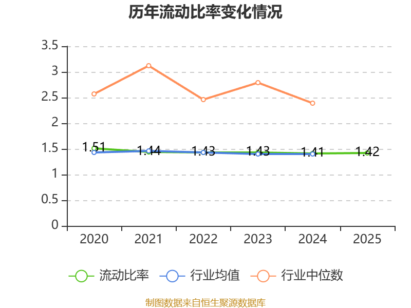 2025年,公司流动比率为1.42,速动比率为0.84。