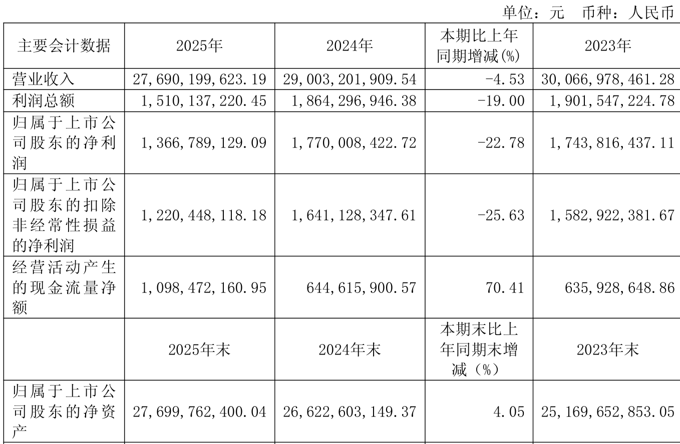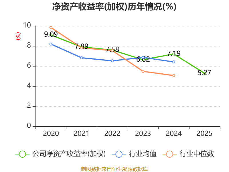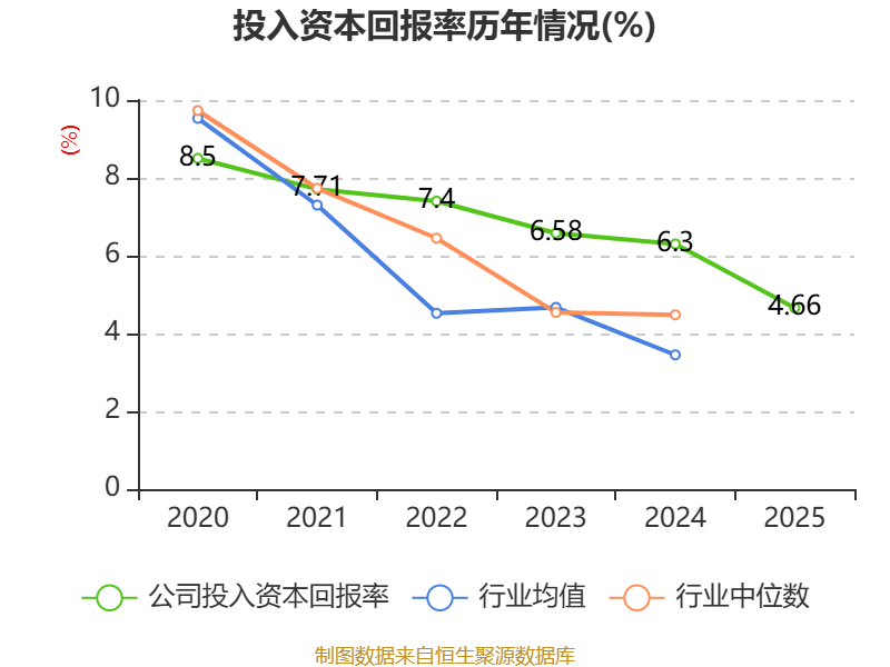 数据显示,2025年公司加权平均净资产收益率为5.27%,较上年同期下降1.92个百分点。公司2025年投入资本回报率为4.66%,较上年同期下降1.64个百分点。