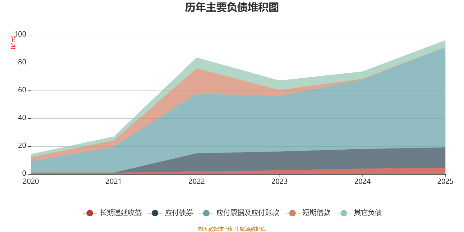 负债重大变化方面,截至2025年末,公司应付票据及应付账款较上年末增加44.26%,占公司总资产比重上升5.06个百分点;应付债券较上年末增加3.33%,占公司总资产比重下降1.07个百分点;一年内到期的非流动负债较上年末减少86.45%,占公司总资产比重下降0.7个百分点;短期借款较上年末减少71.27%,占公司总资产比重下降0.23个百分点。
